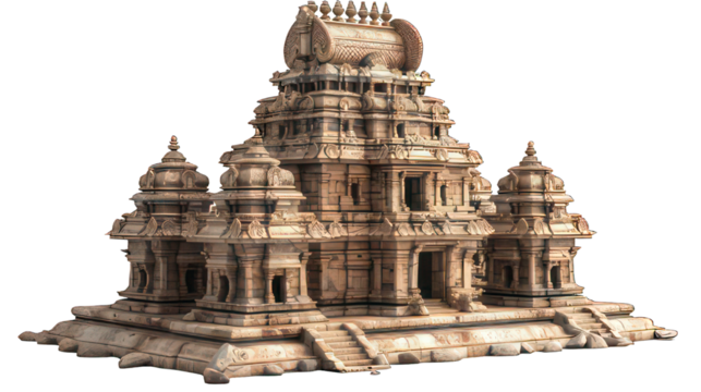 Ancient temple ruins with intricate carvings and weathered stone, showcasing historical architecture and cultural heritage, isolated on transparent background