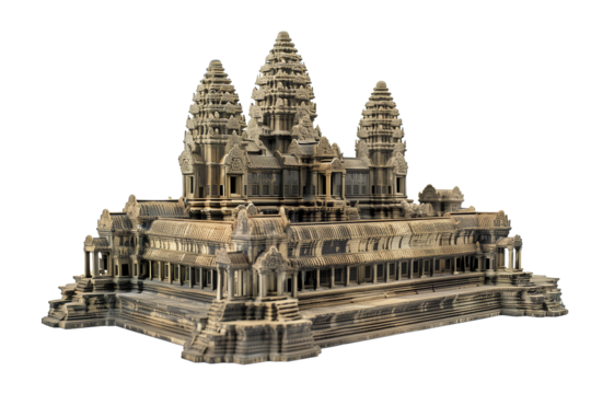 Detailed Miniature Model of Angkor Wat From Cambodia Isolated on Transparent Background