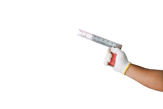 Transparent eager carpenter holding tape measure in yellow hard hat