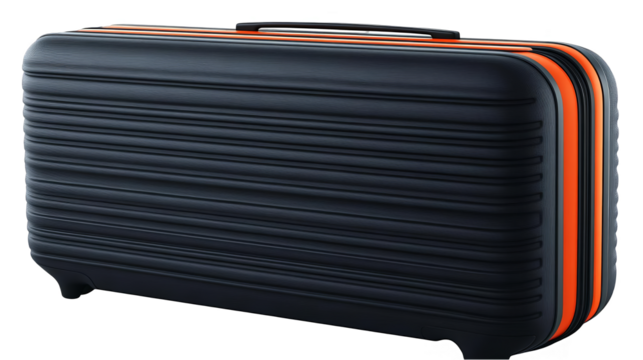 3D Rendered Abstract Black Box With Orange Stripes Isolated Background