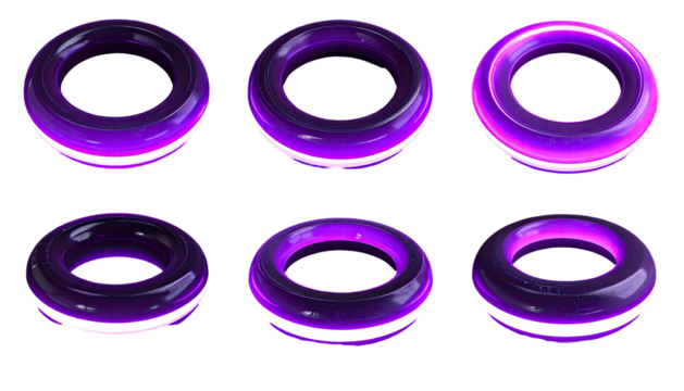 Glowing purple torus shapes in various angles