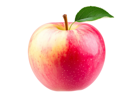 Floating Pink Lady Apple with Leaf, Slight Rotation Angle, Isolated PNG (Generative AI)
