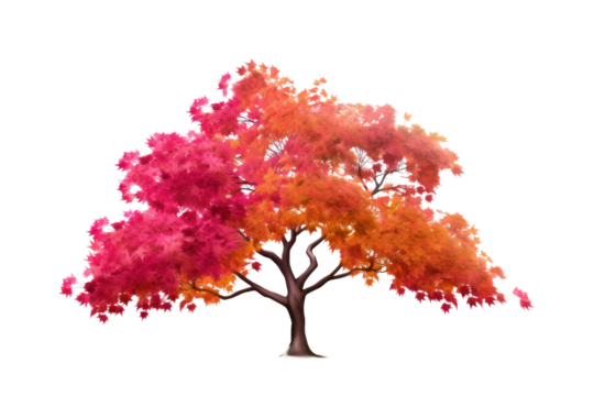 red leaves, twisted trunk. Isolated on transparent background. Isolated on transparent background.