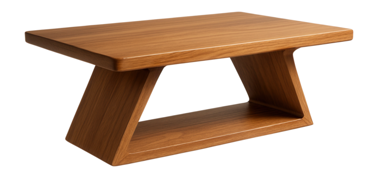 Minimalist wooden stool design with round padded seat on transparent background