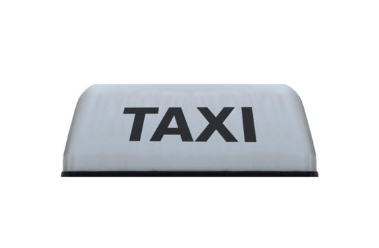 White banner lamp on the roof of a taxi. On isolated transparent background.