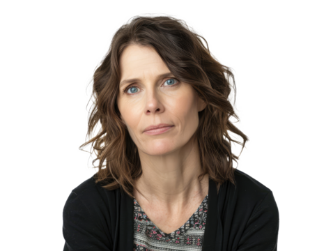 Portrait Collection of Portrait of young boy with red shirt with a curious face isolated on a white background as transparent PNG