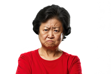 Anger, thumbs down and fail with portrait of woman on transparent background for disappointed, vote and wrong. Opinion, decision and frustrated with person isolated on png for sign, mad and review