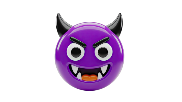 Purple Devil Emoji with Horns and Sharp Teeth