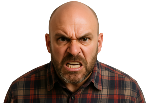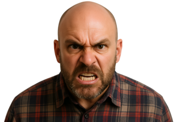 Furious Man with Intense Anger and Furrowed Brows on Transparent
