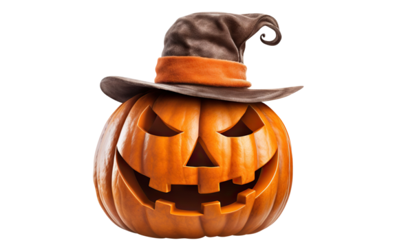 Jack O' Lantern, cut out. Halloween pumpkin in hat, the main symbol of the Happy Halloween holiday