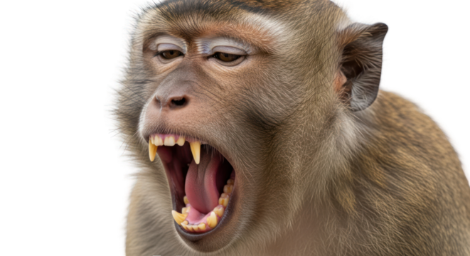 Monkey showing its teeth with mouth open isolated PNG with Transparent Background