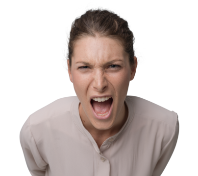 Santa Claus looking angrily at the camera with a furious expression on a white background.