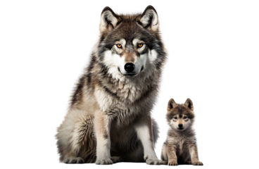 Aggressive wolf isolated on transparent background displaying teeth and intense expression. Detailed fur and vibrant eye color. Frontal perspective showing the animal's predatory nature