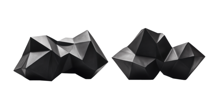 Abstract geometric black sculptures showcasing modern design and artistic expression, isolated on transparent background
