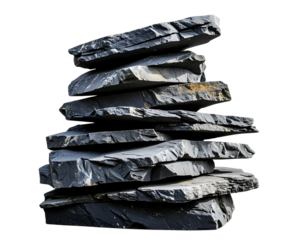 Layered Slate Rock Stack with Angular Shapes and Deep Crevices, Side Angle, isolated PNG