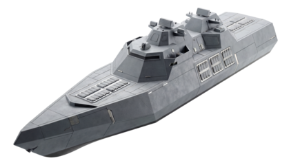 Abstract brutalist stone sculpture with geometric angular shapes and sharp edges, a monumental architectural art render