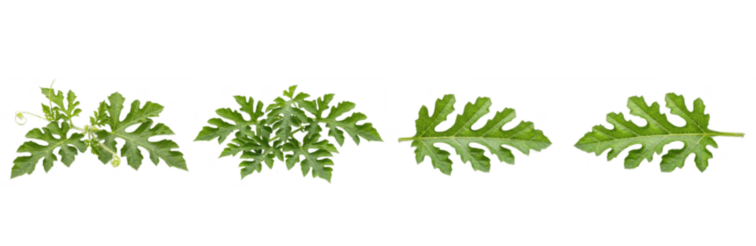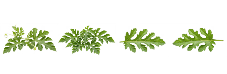 Set of Watermelon Leaves (Citrullus lanatus) with Detailed Botanical Brush Texture for Organic Food and Agricultural Design, isolated on transparent png background, oil paint