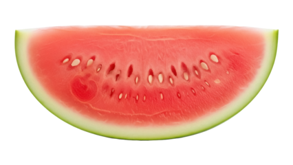 A refreshing triangle slice of watermelon isolated on transparent background, highlighting its vibrant red color, black seeds, and juicy summer treat