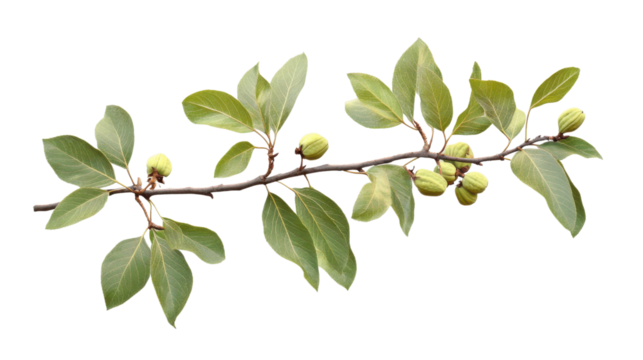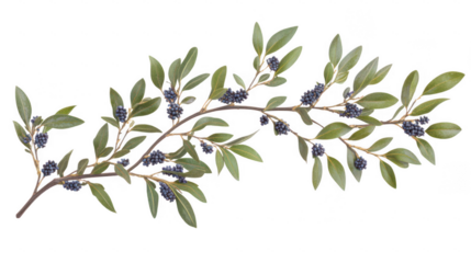 Branch of elaeagnus angustifolia showing unripe fruits and green leaves on transparent background