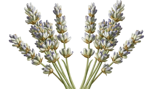 Aromatic Lavender Sprigs with Delicate Purple Flowers. transparent background png