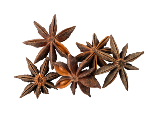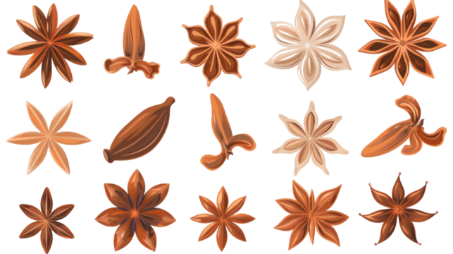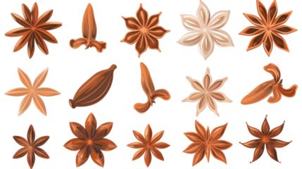 Star anise collection on a transparent background