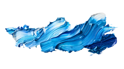 Close up of a blue oil paint smear, showcasing the texture and color variations of the paint  isolated on transparent background