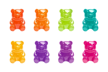 Collection set of colorful gummy bears isolated on transparent or white background, png