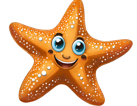 cartoon starfish with a smile on a isolated on white backgroun. Generative AI.
