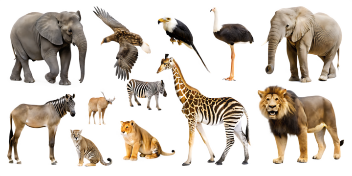 wildlife animal png cut out element set isolated on white background png, ai generated