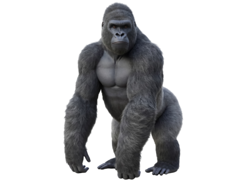 Powerful silverback gorilla isolated PNG, majestic primate with detailed fur on transparent background, wildlife animal for design projects