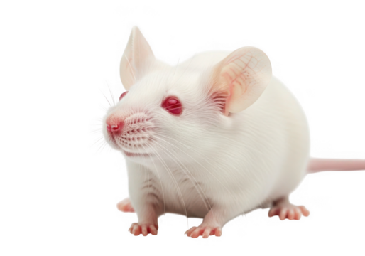 White laboratory rat with red eyes for science research, medical experiment, and scientific testing transparent background