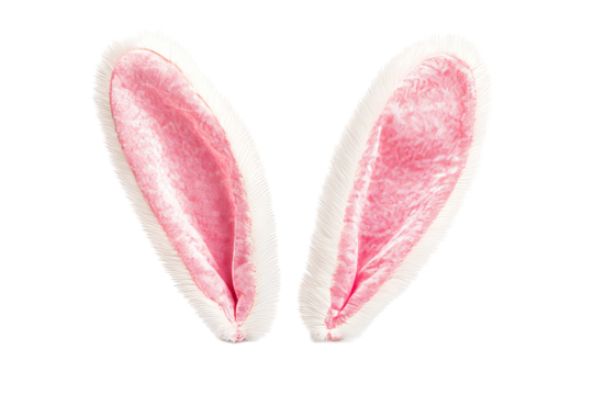 Fluffy white and pink bunny ears costume accessory for easter holiday, spring celebration party or cute animal theme