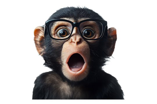 Surprised monkey wear glasses isolated on transparent background