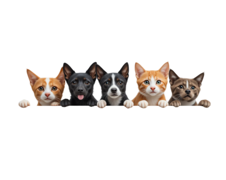 Adorable and playful cats and dogs in a charming pet photography composition showcasing furry companions cute animals and domestic pets for commercial use