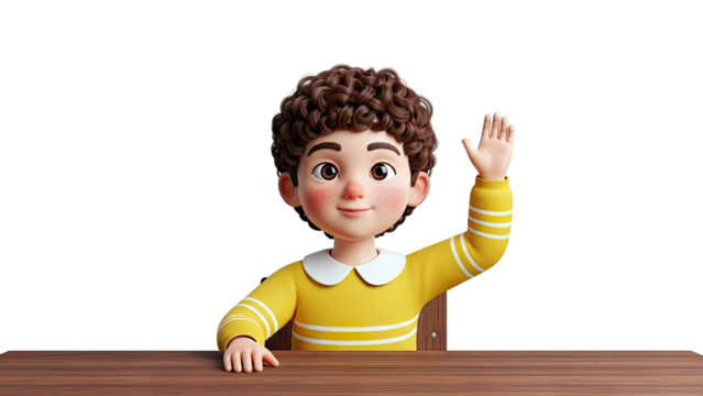 3D Cartoon Boy Peeking Behind a Brown Object