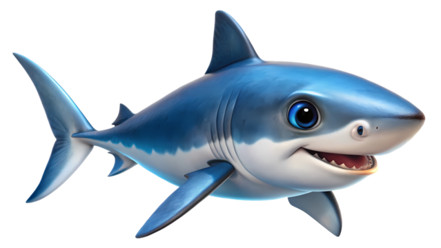 Great white shark swimming in ocean depths, detailed illustration, transparent background, cutout PNG