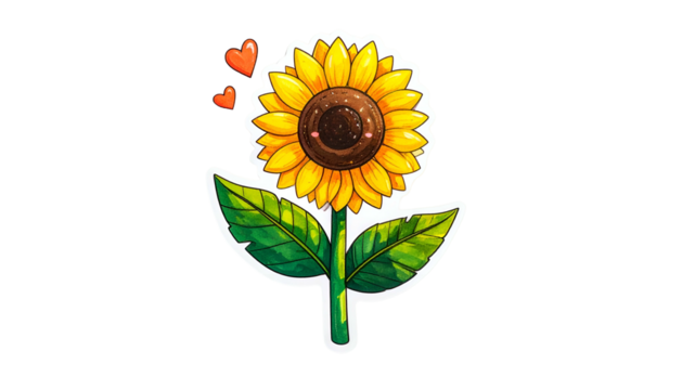 Smiling daisy with heart cheeks on transparent background