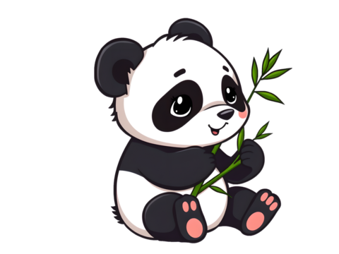 Adorable Anime Panda Sticker: Bamboo Fun on White Vector Background