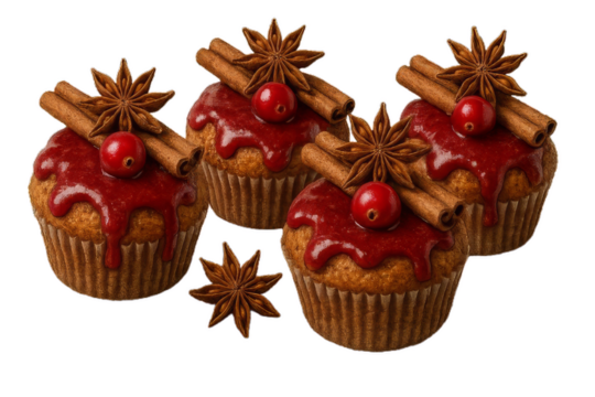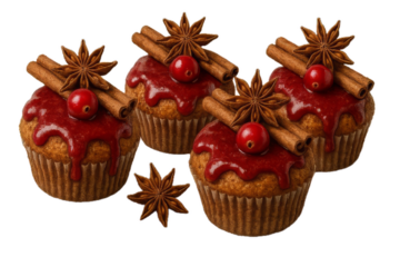 Festive cupcakes with cinnamon, star anise and berries