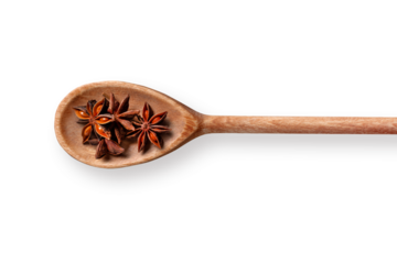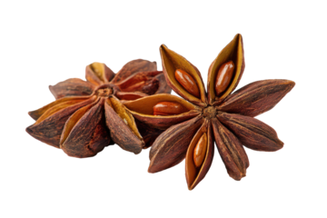 Star anise spice pods isolated on transparent background. Two star anise pods with visible seeds isolated on white background.