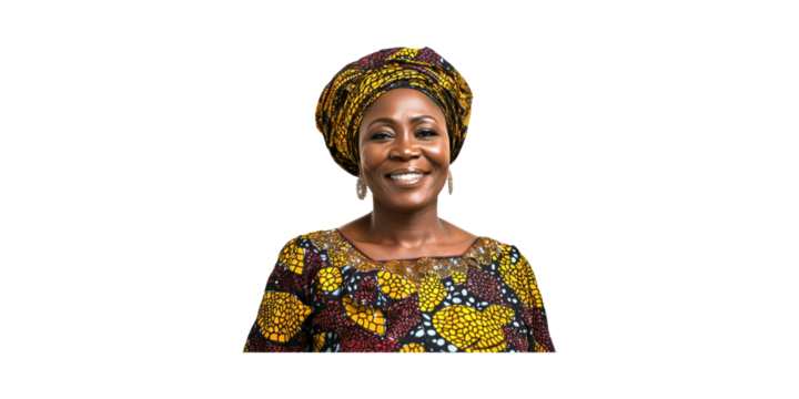 Smiling Woman In Traditional African Attire. Cultural Heritage And Fashion Expression Isolated On Transparent Background