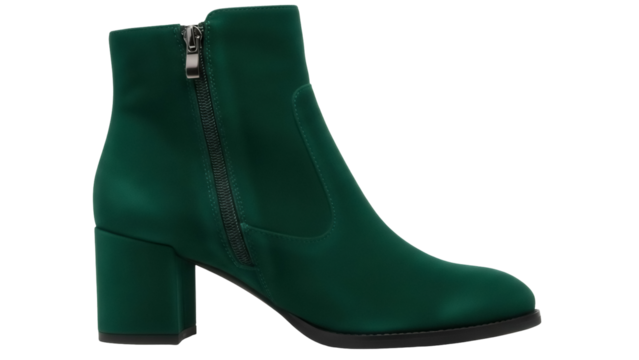 Black leather ankle boot with zipper, scuffed patina and durable work style on isolated background