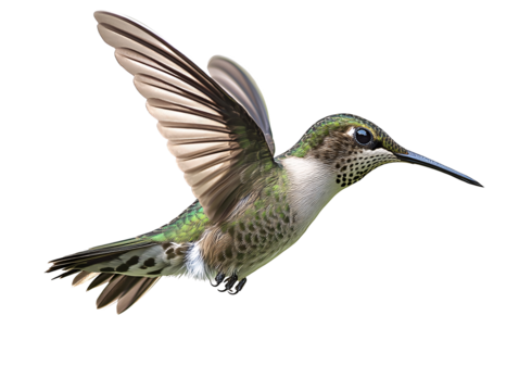 Anna’s Hummingbird in Mid-Flight with Wings Spread Wide, Side View, Isolated Transparent Background PNG
