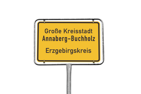 Ortstafel, Annaberg-Buchholz, Große Kreisstadt, Erzgebirgskreis, freigestellt als PNG, (Symbolbild)