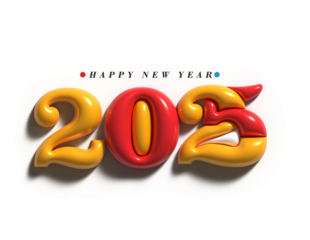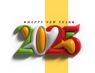 2025 Happy New Year Text Typography PNG Design Element.