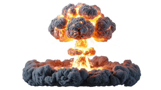 nuclear explosions and mushroom cloud isolated on transparent or white background