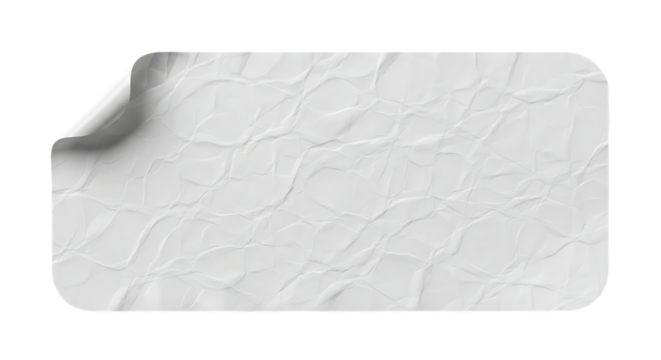 Blank crumpled white paper sticker with peeling corner on black background