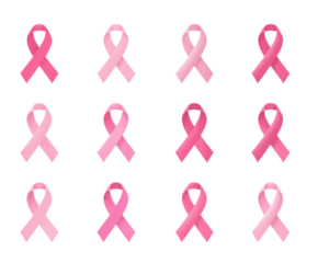 Pink ribbons arranged on a black background, representing breast cancer awareness.