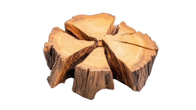 Tree stump display arrangement on a transparent background, PNG image, PNG file.