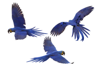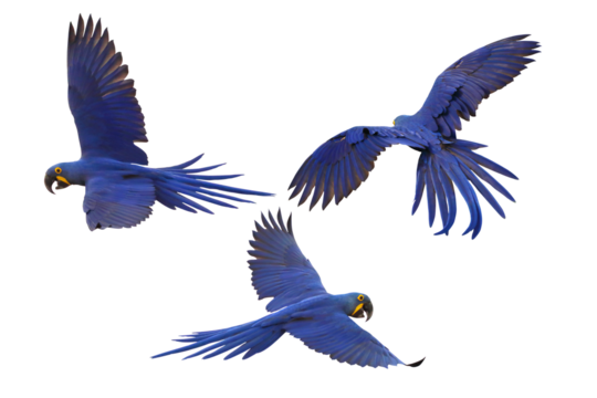 Set of Hyacinth macaw flying isolated on transparent background png file